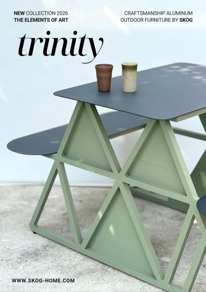 Experience the beauty through the rhythm of geometric shapes with ‘TRINITY,’ an outdoor table set that reflects SKog’s design philosophy
